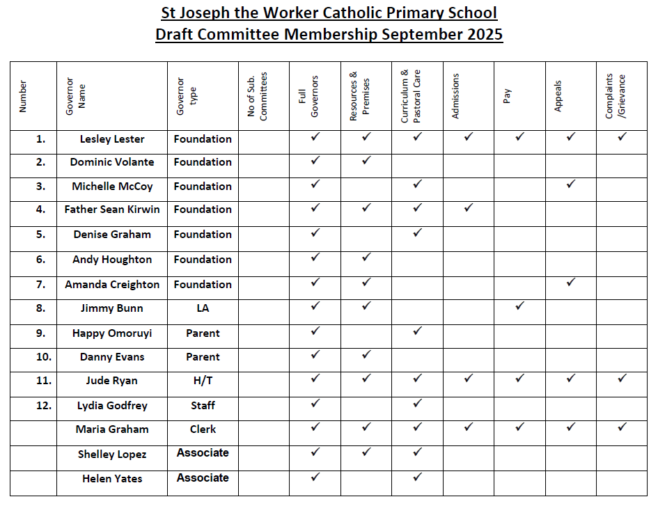 The delegated powers of the Committees shall be those determined by the Full Governing Body at its first meeting of the school year.  A quorum for each meeting shall be four, including co-opted members, and three for other Committees.  Terms and conditions shall be those suggested by the Liverpool Archdiocesan Schools Commission.  A decision of a Committee must be determined by a majority of votes of those governors and associate members present and voting. If there is an equal number of votes, the chair (or the person acting as chair), provided that they are a governor, has a second (or casting) vote. The committee can only vote if the majority of the committee members present are governors.